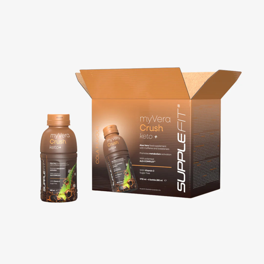MYVERA CRUSH Keto + | Nahrungsergänzungsmittel mit Koffein und Süßungsmitteln in einzelnen 285 ml Flaschen (6er Pack) – 1710 ml