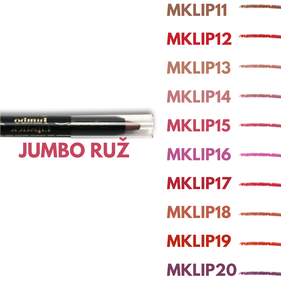 Jumbo ruž za usne je ruž koji kombinuje udobnost balzama za usne, pigmentiranu boju ruža, sjaj sjajila za usne i preciznost olovke za usne. Usnama daje kremasti finiš i bogatu boju, vlaži ih i čini ih mekim i podatnim.